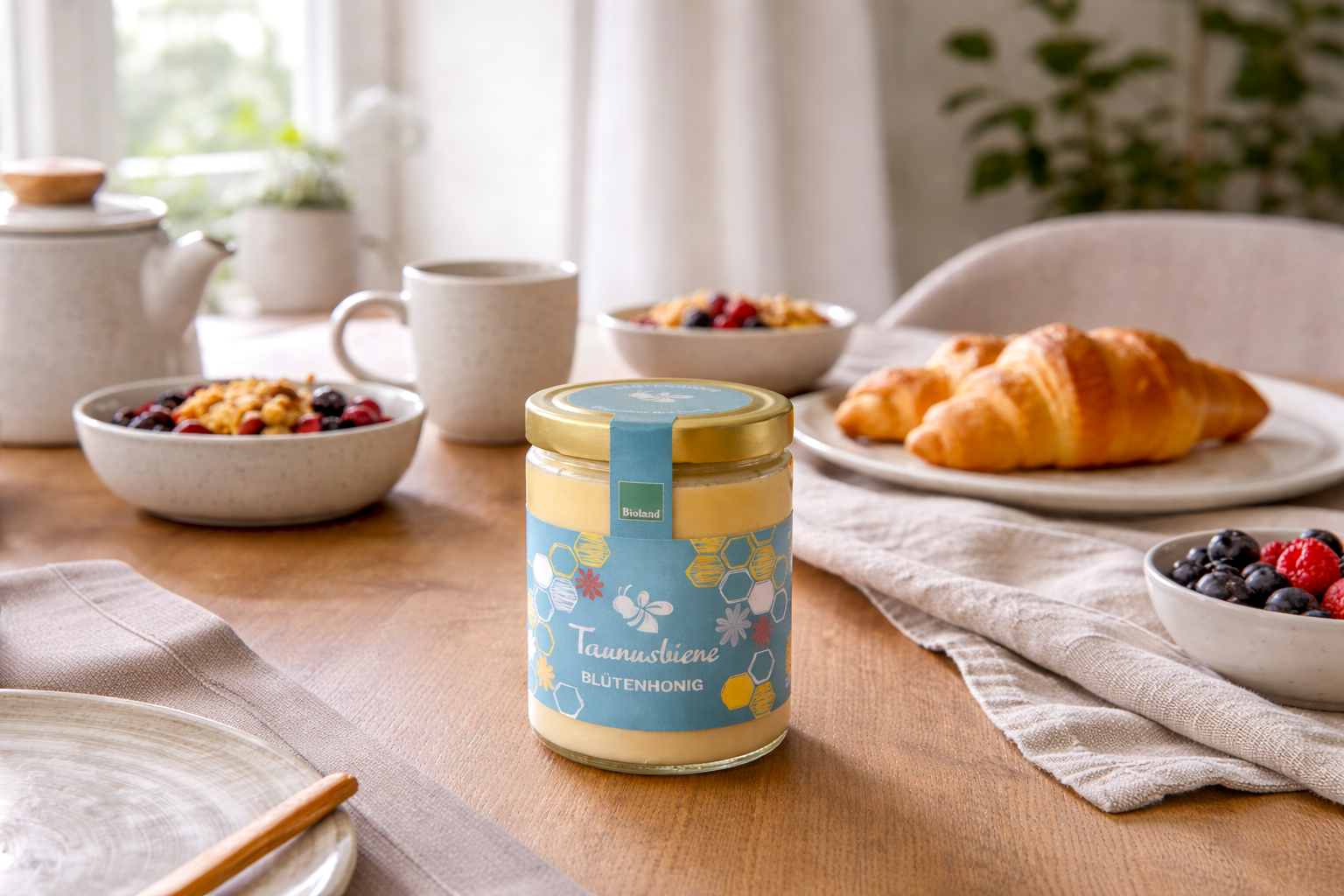Die Taunusbiene ist eine Bioland-Imkerei aus dem, welch‘ Überraschung, Taunus! Genauer gesagt, aus dem Rheingau-Taunus – dort ist die Imkerei zu finden! Und der Name ist Programm: Alle unsere Bienenvölker sind Rheingau-Taunus, im Hochtaunus und im Main-Taunus zu Hause. Unser Leitmotiv dabei: Weil wir Bienen lieben!